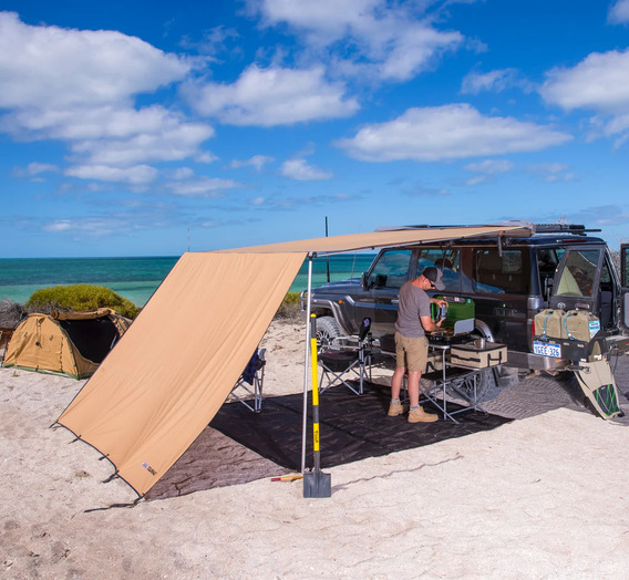 El Rompevientos para Toldos y Camping de ARB actúa como barrera para proteger tu espacio de campamento del viento, creando una zona más cómoda para cocinar, descansar o refugiarte. Este accesorio se complementa con los toldos laterales para crear un campamento más protegido.
